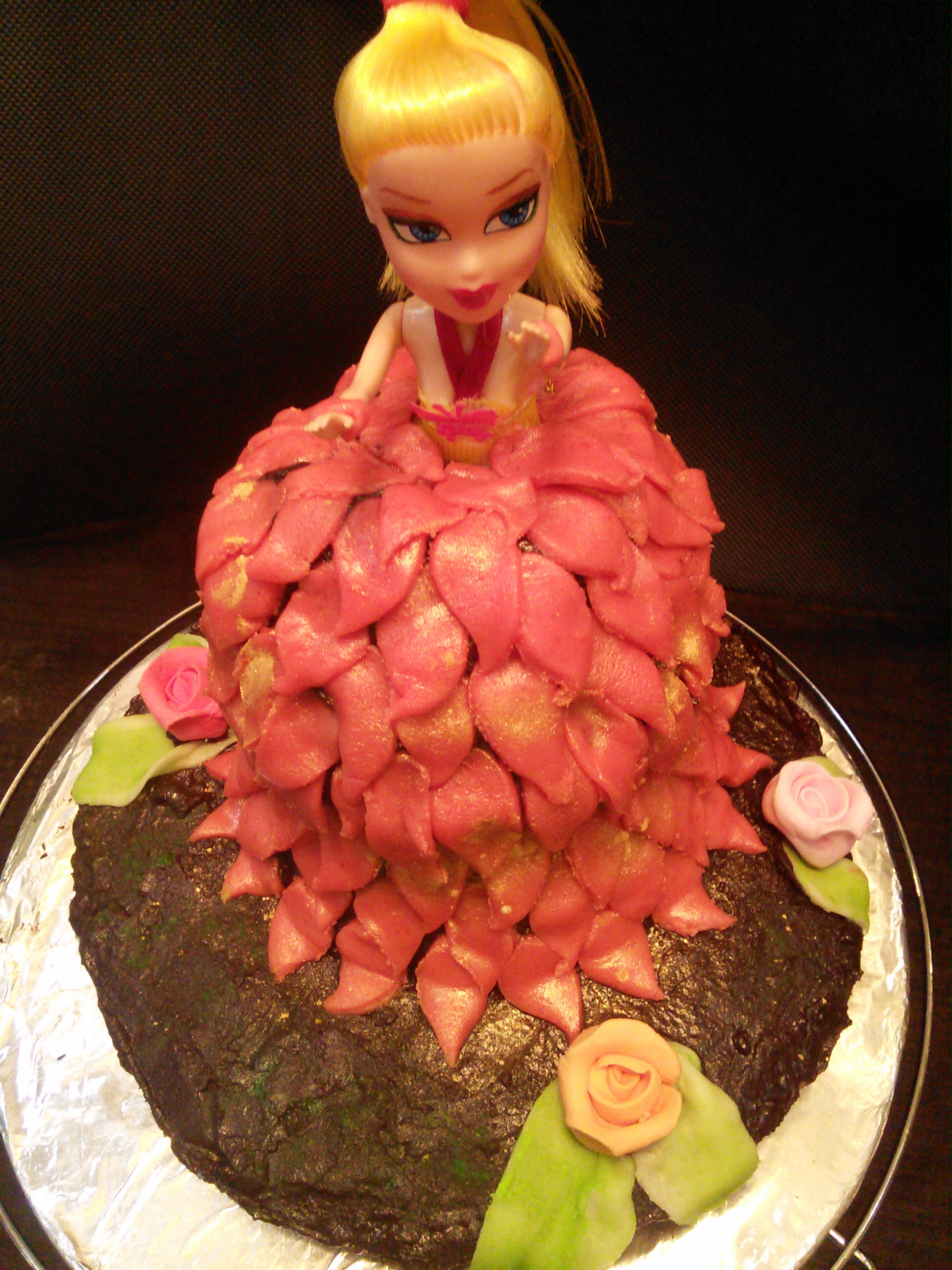 Vanilla Cake covered in chocolate ganache and molded to look like a princess…