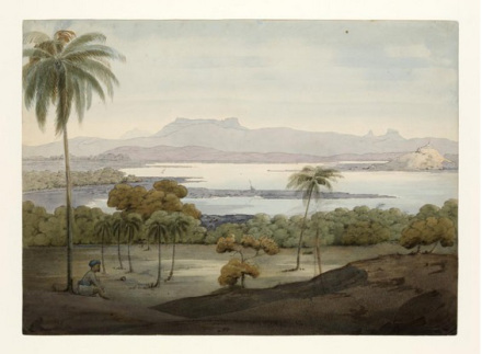 Panoramic view of Thana Creek painted by James Wales.ca. 1791